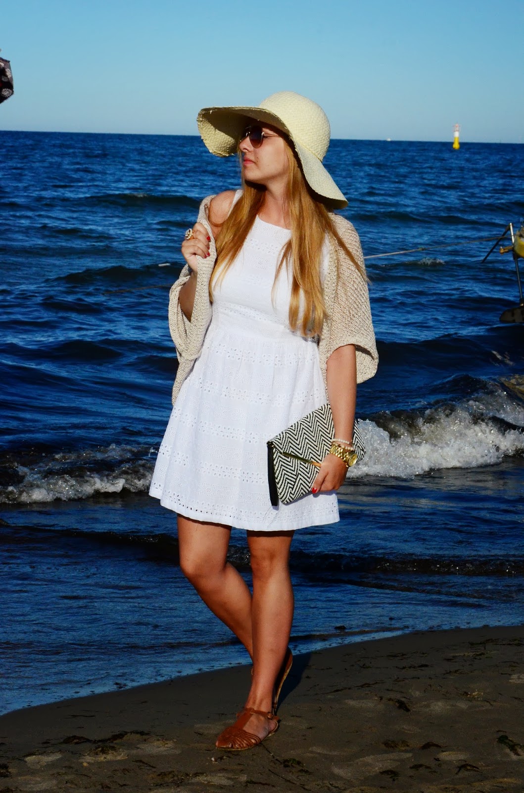 Ahoj wakacyjna przygodo!- takie słowa same cisną się na usta. Modne, marynarskie ubrania nierozerwalnie kojarzą nam się z nadmorskimi kurortami przepełnionymi słońcem i błogą beztroską. Biel, granat, czerwień to baza kolorów marynarskich ale także poziome paski-prosty i ponadczasowy wzór to nieodłączne elementy tego stylu. Jest on uniwersalny i ponadczasowy. Łączy w sobie cechy wakacyjnego luzu a także klasycznej elegancji. Wszystko zależy od nas jakie rzeczy ze sobą połączymy. Styl marynarski można śmiało rzec jest wszędobylski i doskonały na każdą okazję. Mnie również udzieliła się wakacyjna aura. Podczas nadmorskich wojaży postanowiłam połączyć pasiastą bluzkę z moimi ulubionymi szortami. Dodatkowo wybrałam słomiany kapelusz typu Panama z czerwono granatową wstążką i białe okulary. Myślę, że moja stylizacja doskonale oddaje wakacyjny klimat. A jak Wam podoba się moja kombinacja?